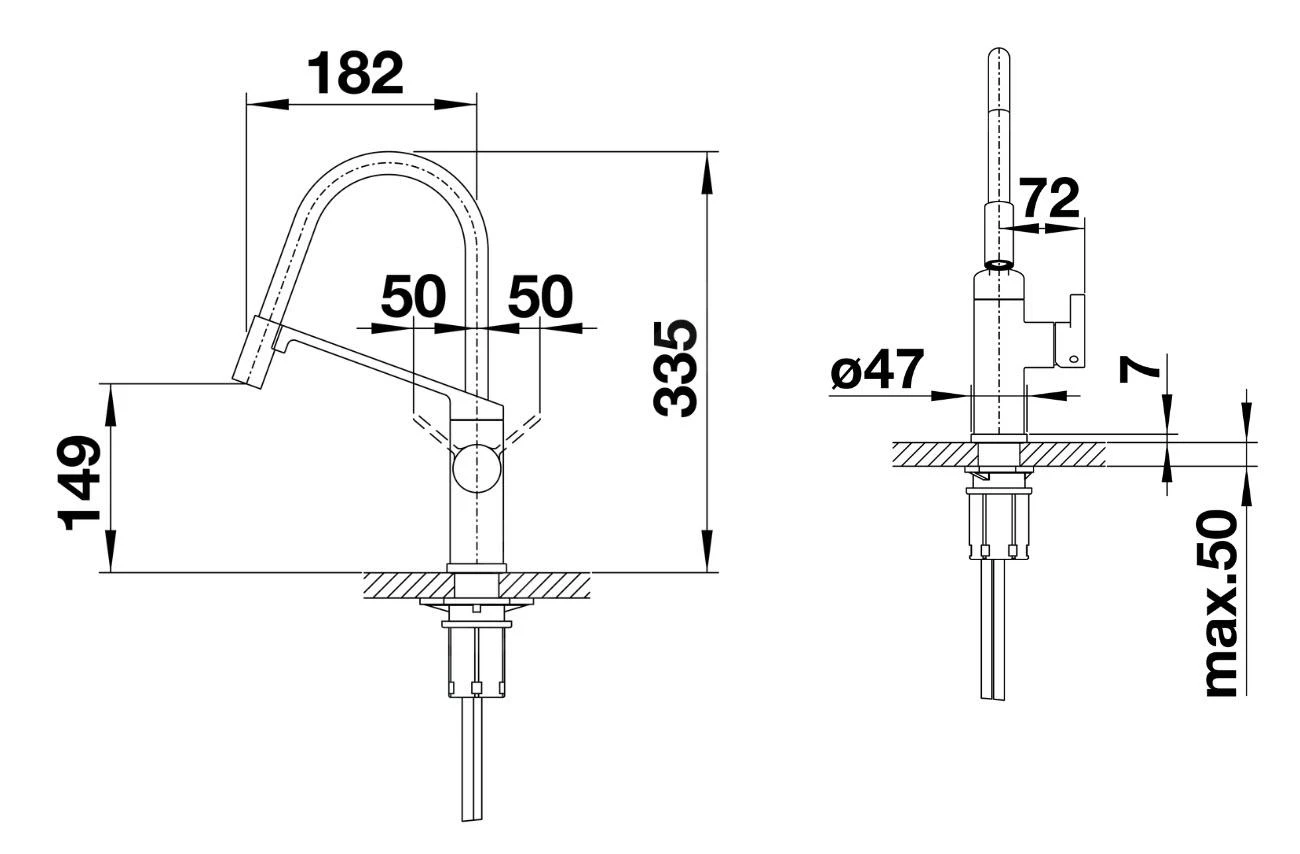 Eéngreeps keukenkraan met flexibele uitloop